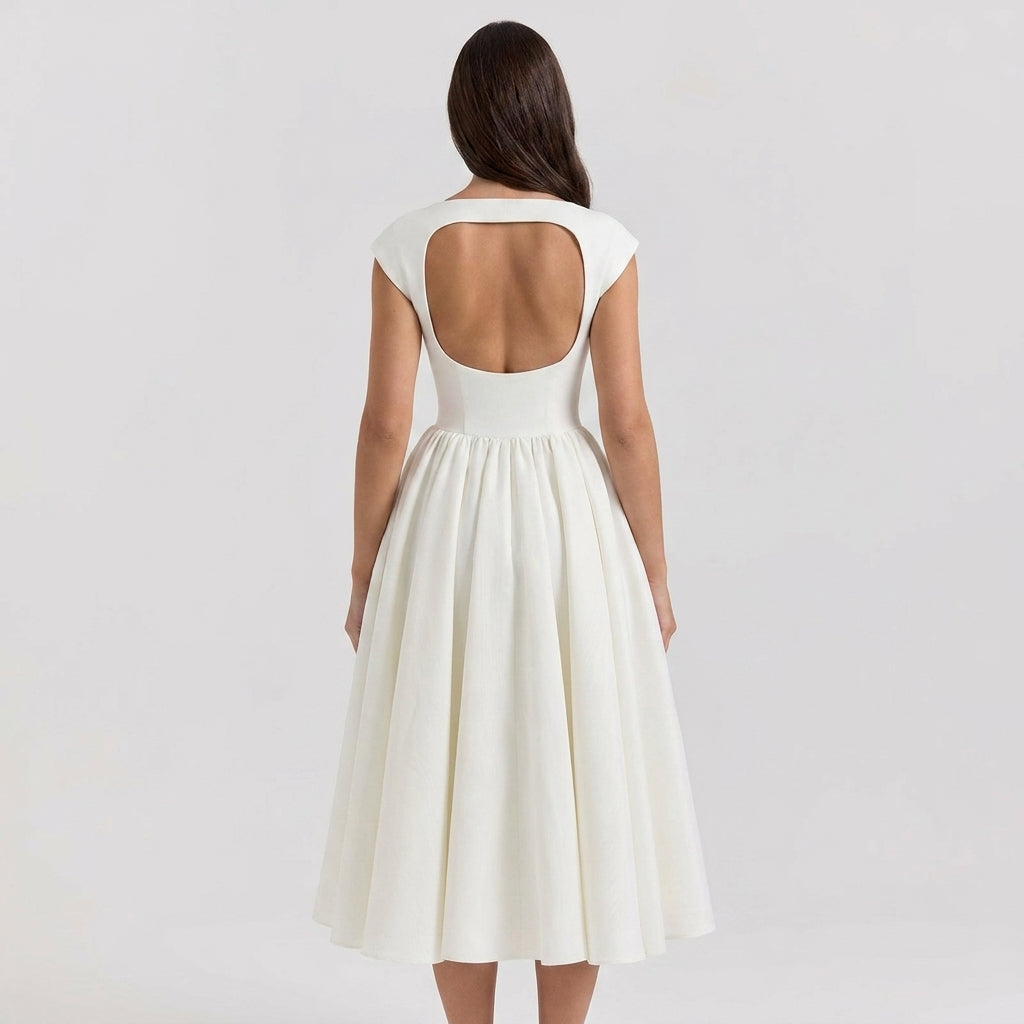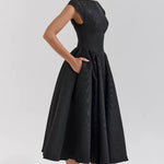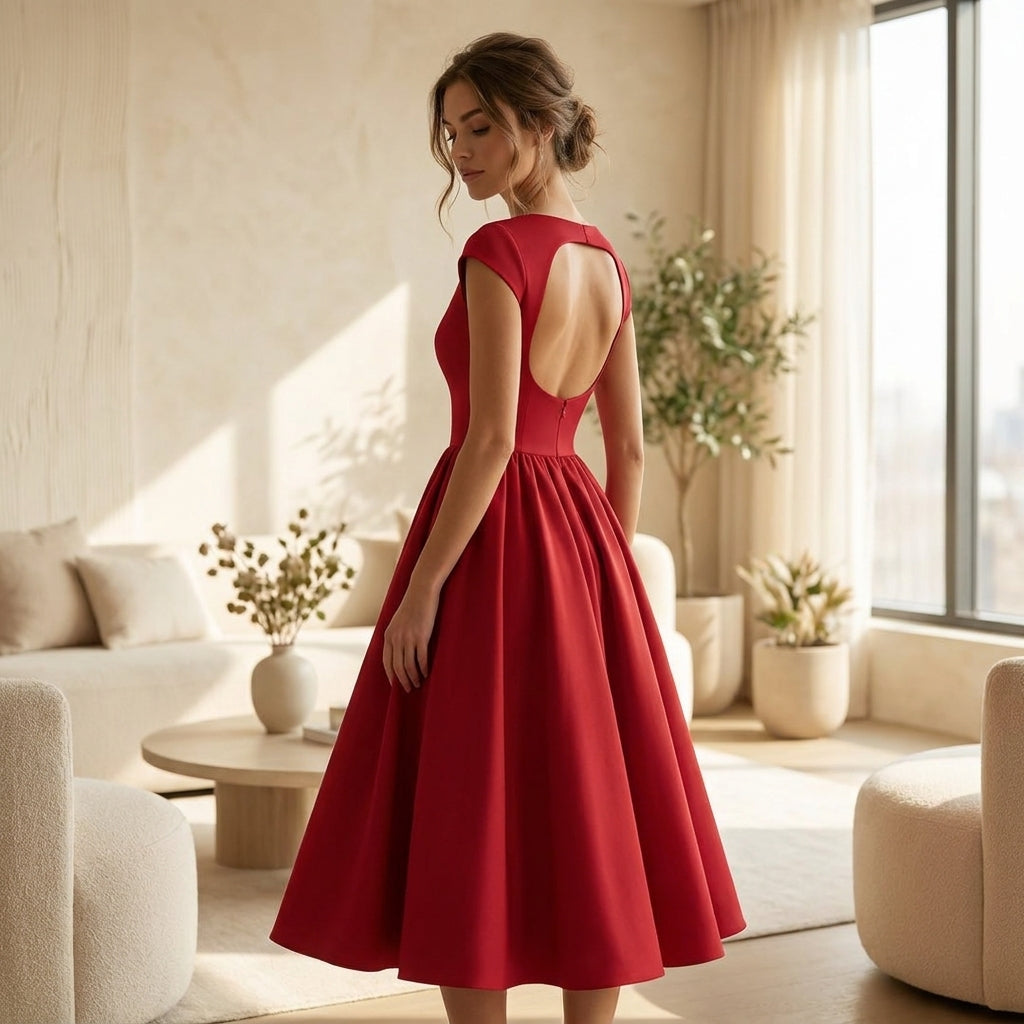 Structured Cap Sleeve Midi Dress – Designed for women who want a timeless and refined silhouette. This midi dress features structured cap sleeves and a tailored fit that enhances your shape while maintaining elegant simplicity. The clean lines and classic length make this dress suitable for formal occasions, work events, or special dinners.