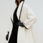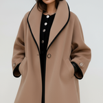 Refined Detailing: Wide sculpted collar, contrast trim, and button accents add sophistication.