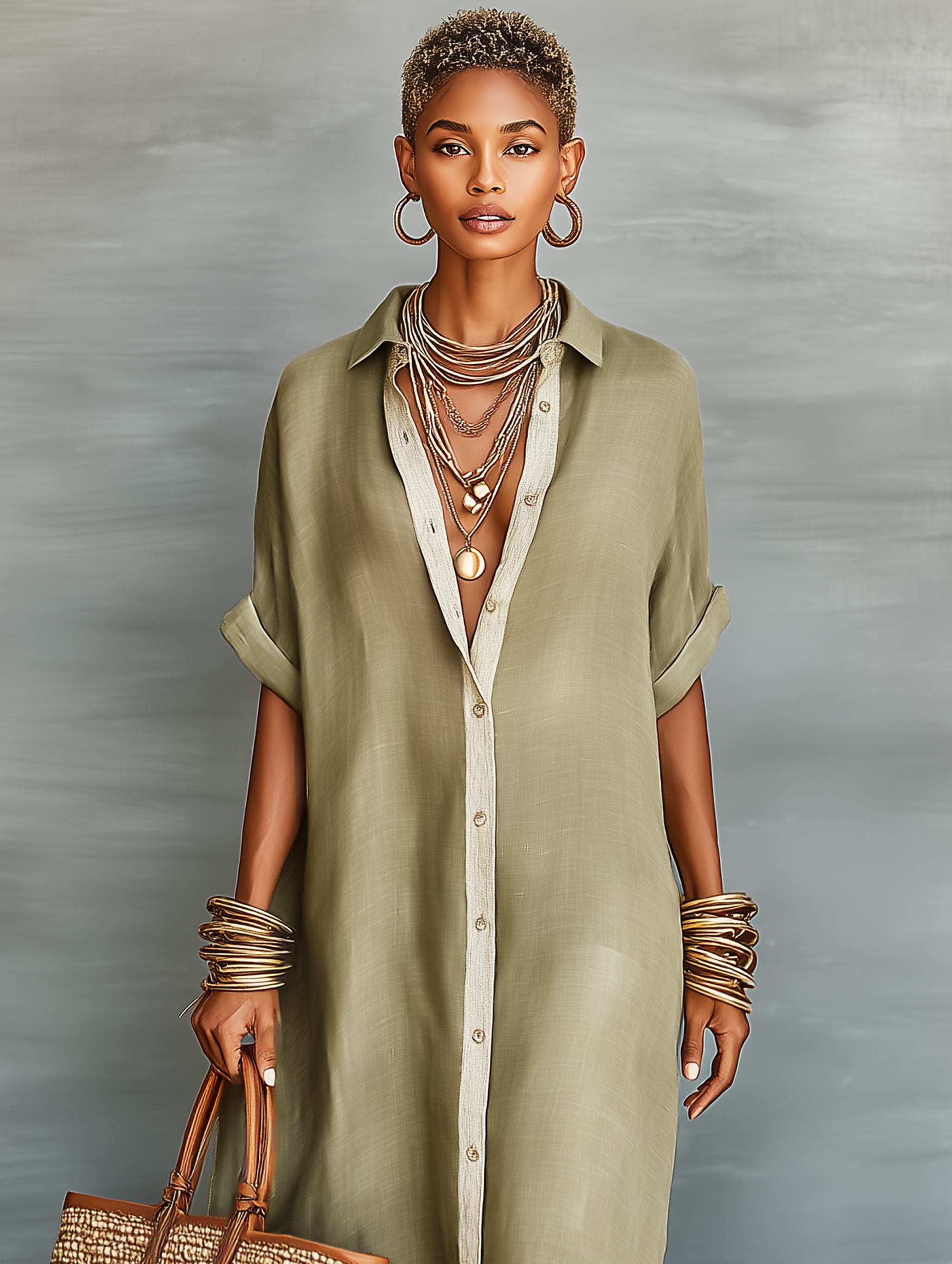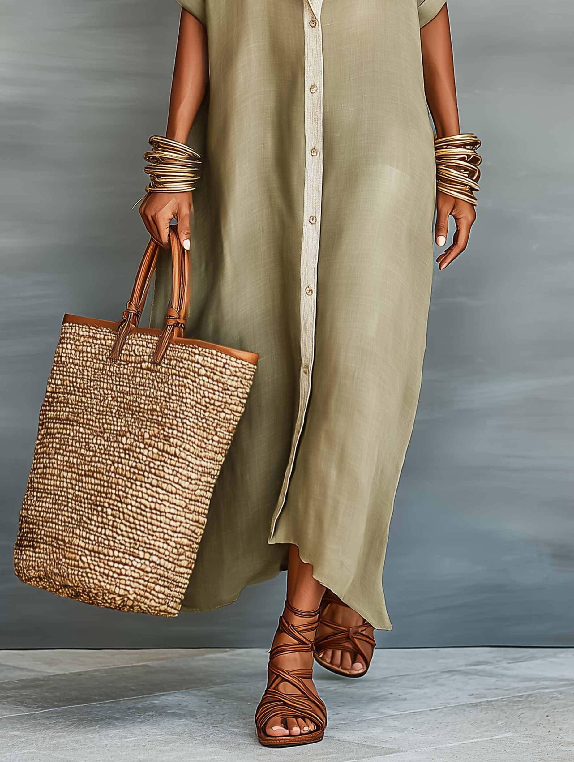 Minimalist Short Sleeve Shirt Maxi Dress – This product is designed to bring effortless style to your wardrobe. The clean shirt silhouette and relaxed fit create a timeless, modern look perfect for warm days.