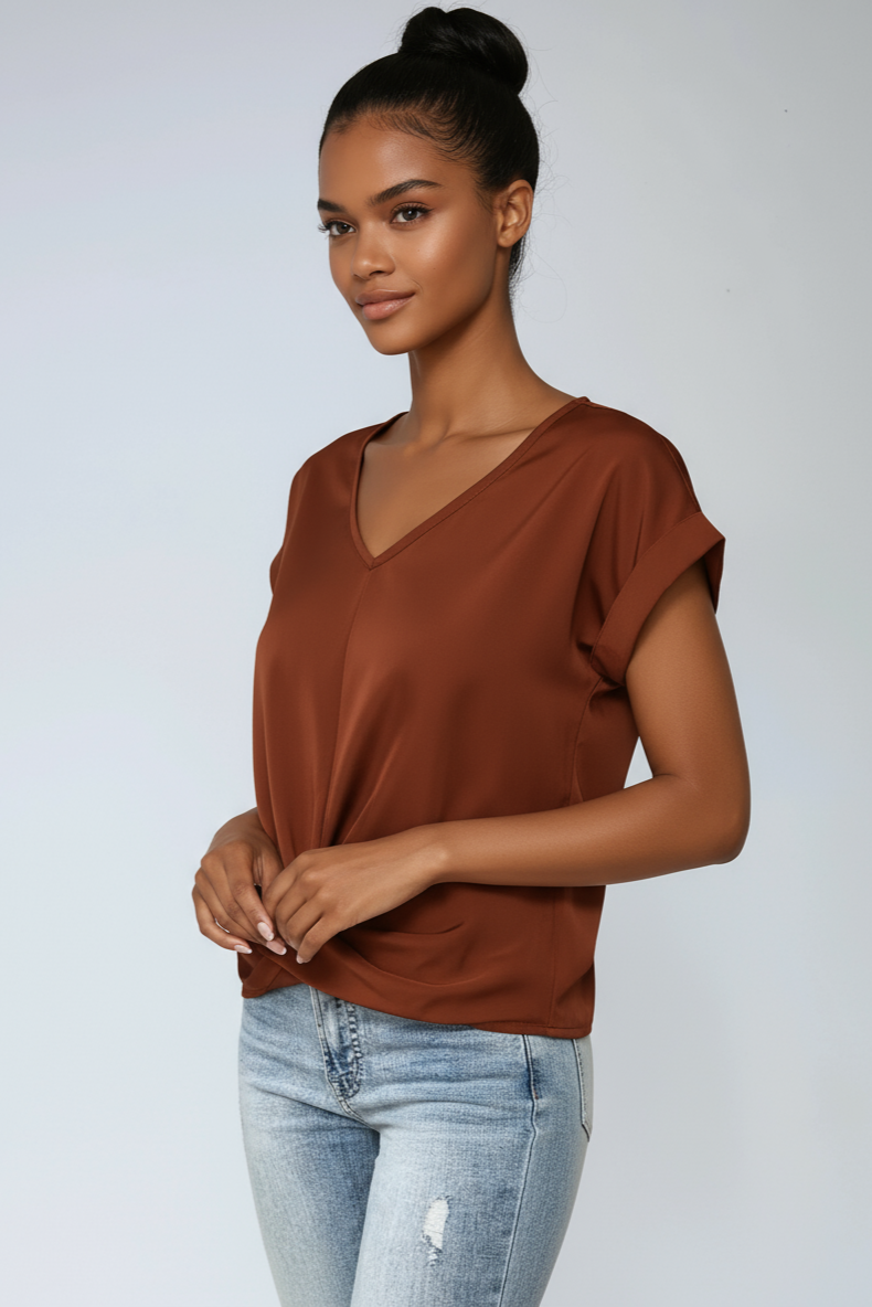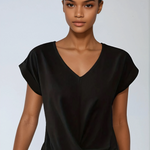Black Satin V-Neck Blouse – Designed for women who want sleek elegance with a modern, versatile style. Crafted from smooth satin, this relaxed fit top offers all-day comfort with a subtle, luxurious sheen.