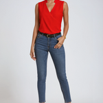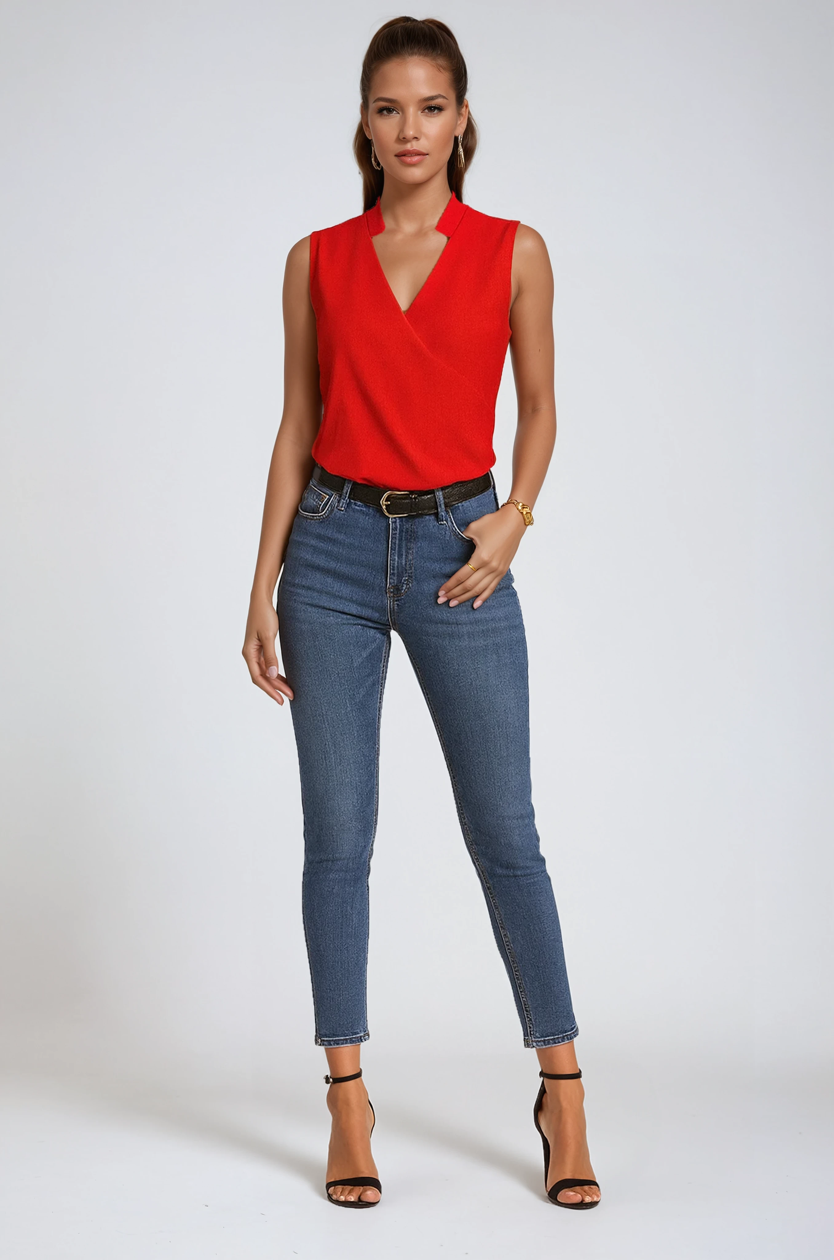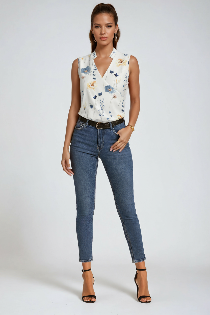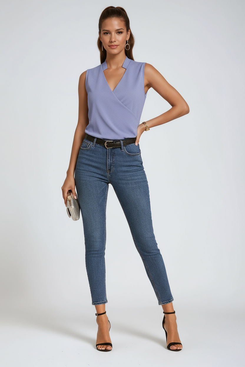 Sleeveless V-Neck Blouse – Designed for women who want effortless polish with a modern edge. Crafted from lightweight, softly flowing fabric, this sleeveless V-neck blouse offers comfort, a flattering shape, and versatile style for day-to-night wear.
