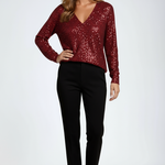 Shimmer with Every Step | Sequin V-Neck Long Sleeve Party Top – Designed for women who want instant glamour with effortless comfort and style. Crafted from lightweight knit fabric, this relaxed-fit top offers all-day ease while making a sparkling statement.
