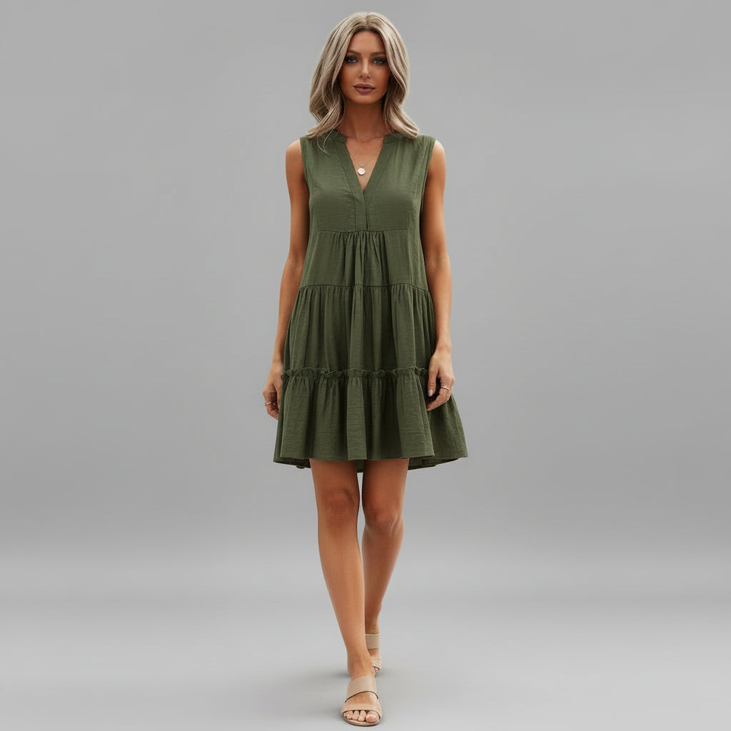 Tiered V Neck Dress – A flowing dress designed for an easy and feminine everyday look. The tiered shape and V neckline create a flattering silhouette, while the relaxed fit makes it ideal for warm days, holidays and casual outings.
